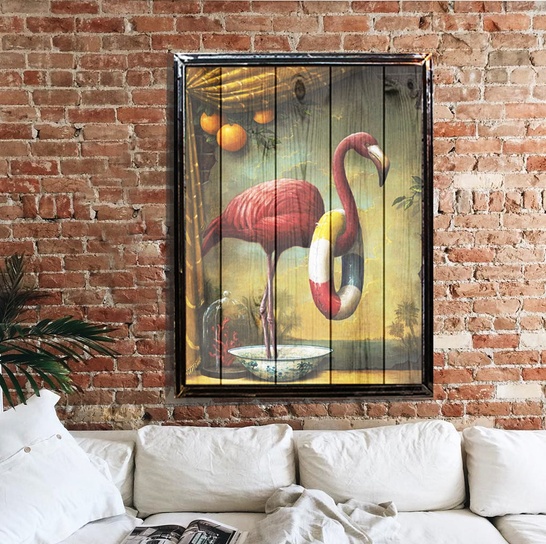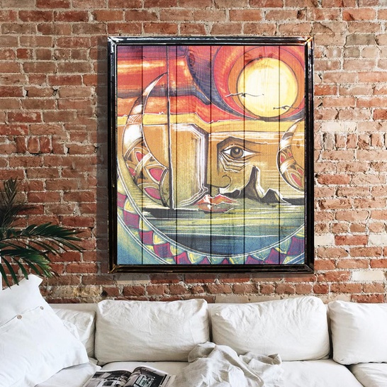 Панно и картины на досках в стиле лофт покоряют удивительным сочетанием природных древесных фактур и современных технологий. Основа картины изготавливается из предварительно обработанной древесины, часто искусственно состаренной, чтобы подчеркнуть брутальный, грубоватый характер «полотна». Однако картина на дереве подходит не только для интерьера в индустриальном стиле. Она способна внести особый шарм в романтичный рустик или прованс, сделать более теплым и уютным минималистичный модерн или холодный хай-тек.