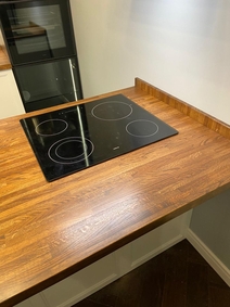 Столешница с выдвигающимся столиком из массива сращенного дуба с тонировкой масло-воском.