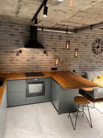 Кухня на металлокаркасе с фасадами из массива сращенного дуба