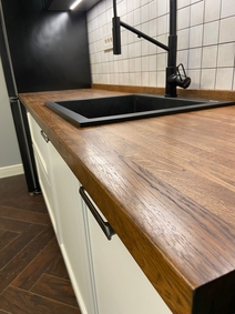 Столешница из массива сращенного дуба с тонировкой масло-воском.