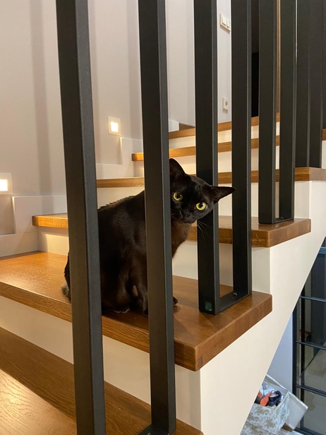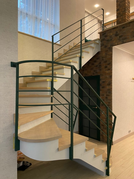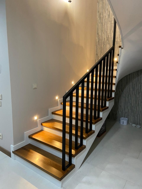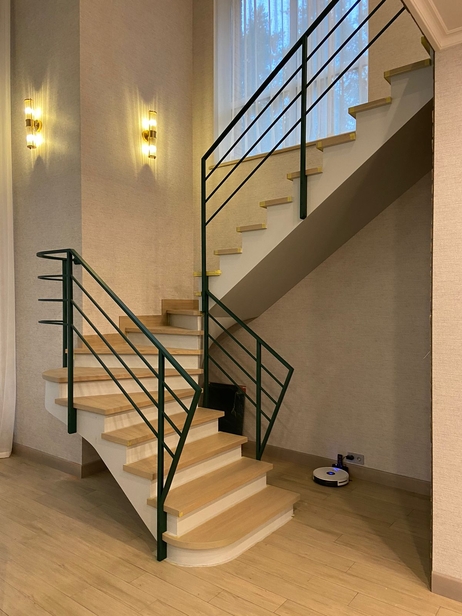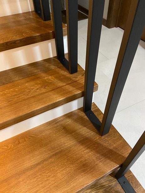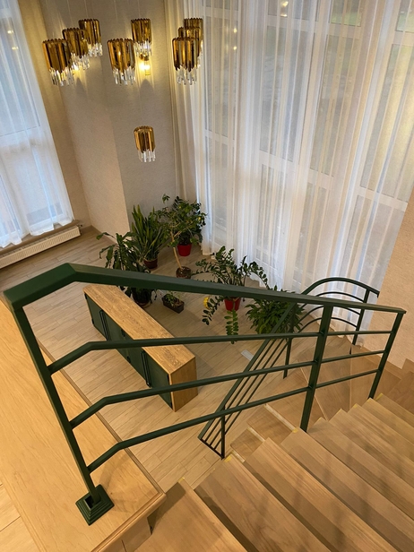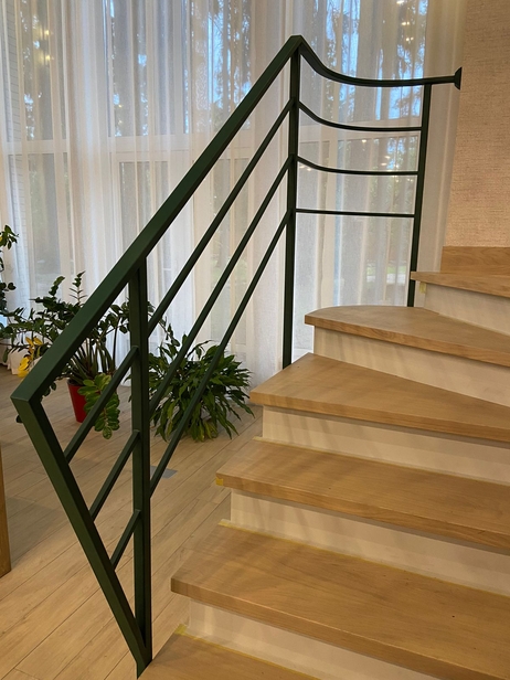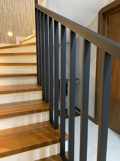 Лестница из массива бука с перилами из стального профиля